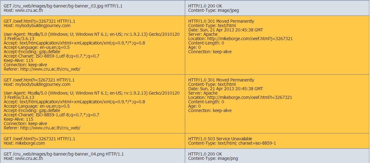 - โหลด HTTP Capture แบบ Proxy Request จะเห็นการติดต่อไปที่ เว็บมัลแวร์ mybodybuildingjourney.com