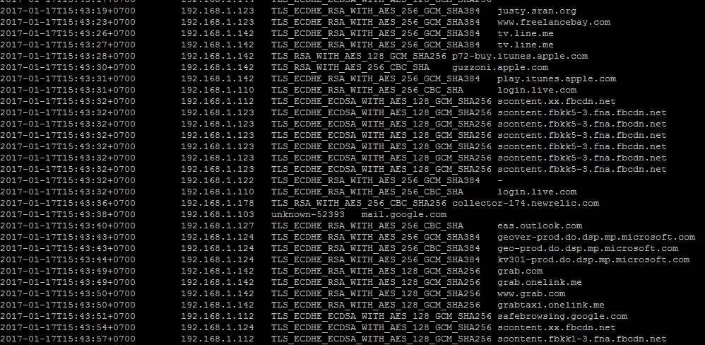 ภาพถ้าเป็นการติดต่อสื่อสารแบบ HTTP(S) ผ่าน SSL สิ่งที่มองเห็นคือค่าการติดต่อสื่อสารระหว่างไอพีต้นทาง และ โดเมนที่ทำการติดต่อสื่อสาร จากนั้นเป็นค่าการเข้ารหัส ซึ่ง Content ไม่สามารถระบุตำแหน่งปลายทาง เช่น ค่า URI ได้ HEAD ไม่สามารถมองเห็นได้เนื่องจากเกิดการเข้ารหัส