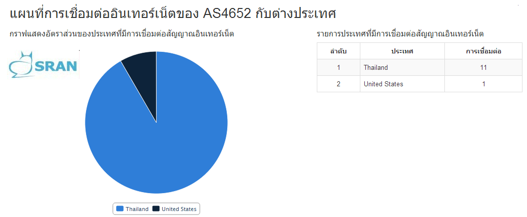 จากภาพแผนที่อินเทอร์เน็ตที่ทางศูนย์เทคโนโลยีและคอมพิวเตอร์แห่งชาติ NECTEC ได้จัดทำขึ้นในเดือนธันวาคม 2556 ที่เป็น International Internet Gateway มาประกอบกับข้อมูลที่ทางทีมงาน SRAN จัดทำลงฐานข้อมูลจะสามารถสรุปได้ดังนี้
