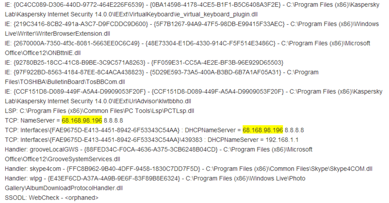 2.1 ค่า DNS : ผลการสำรวจพบว่าเราเตอร์ที่ถูกเข้าถึงข้อูลได้นั้นมีการถูกเปลี่ยนค่า DNS ดังนี้
