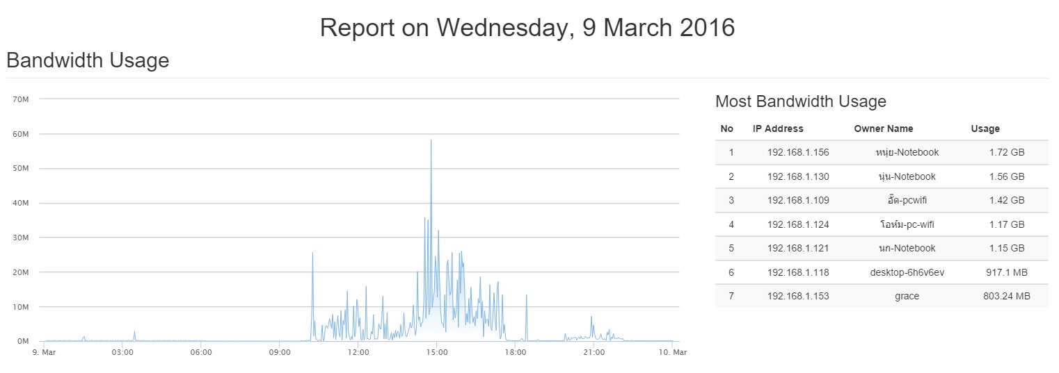 รายงานปริมาณการใช้งาน Bandwidth ภายในองค์กร